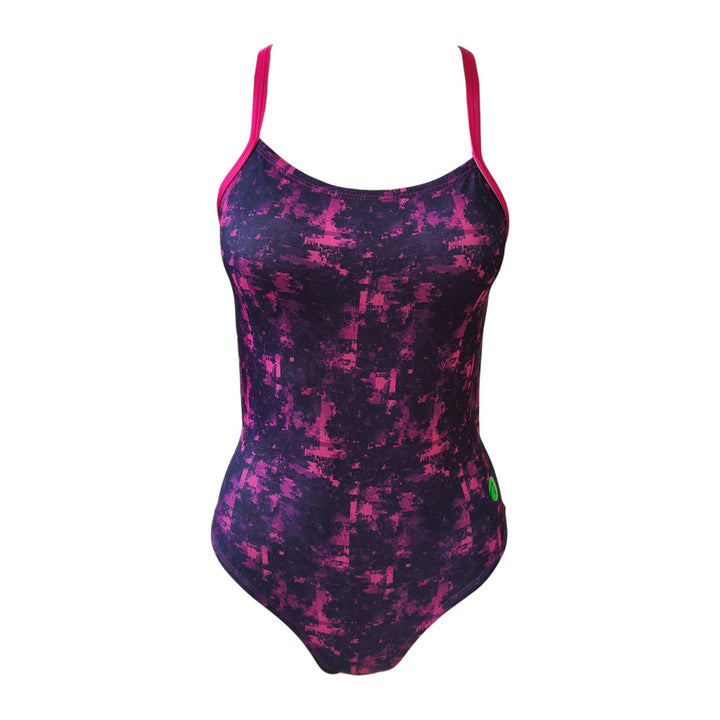 Vestido de baño entero tiras Pixel Fucsia